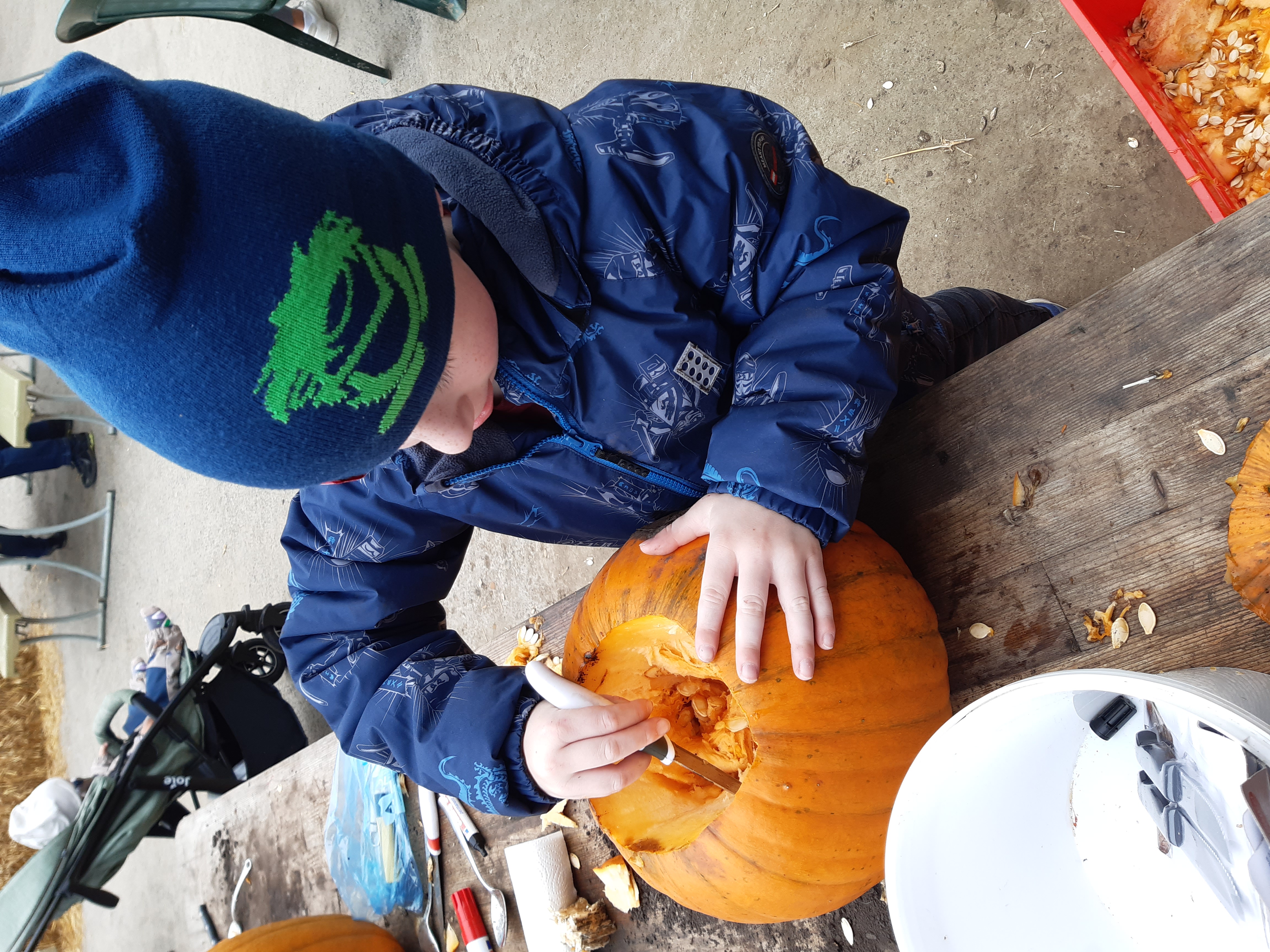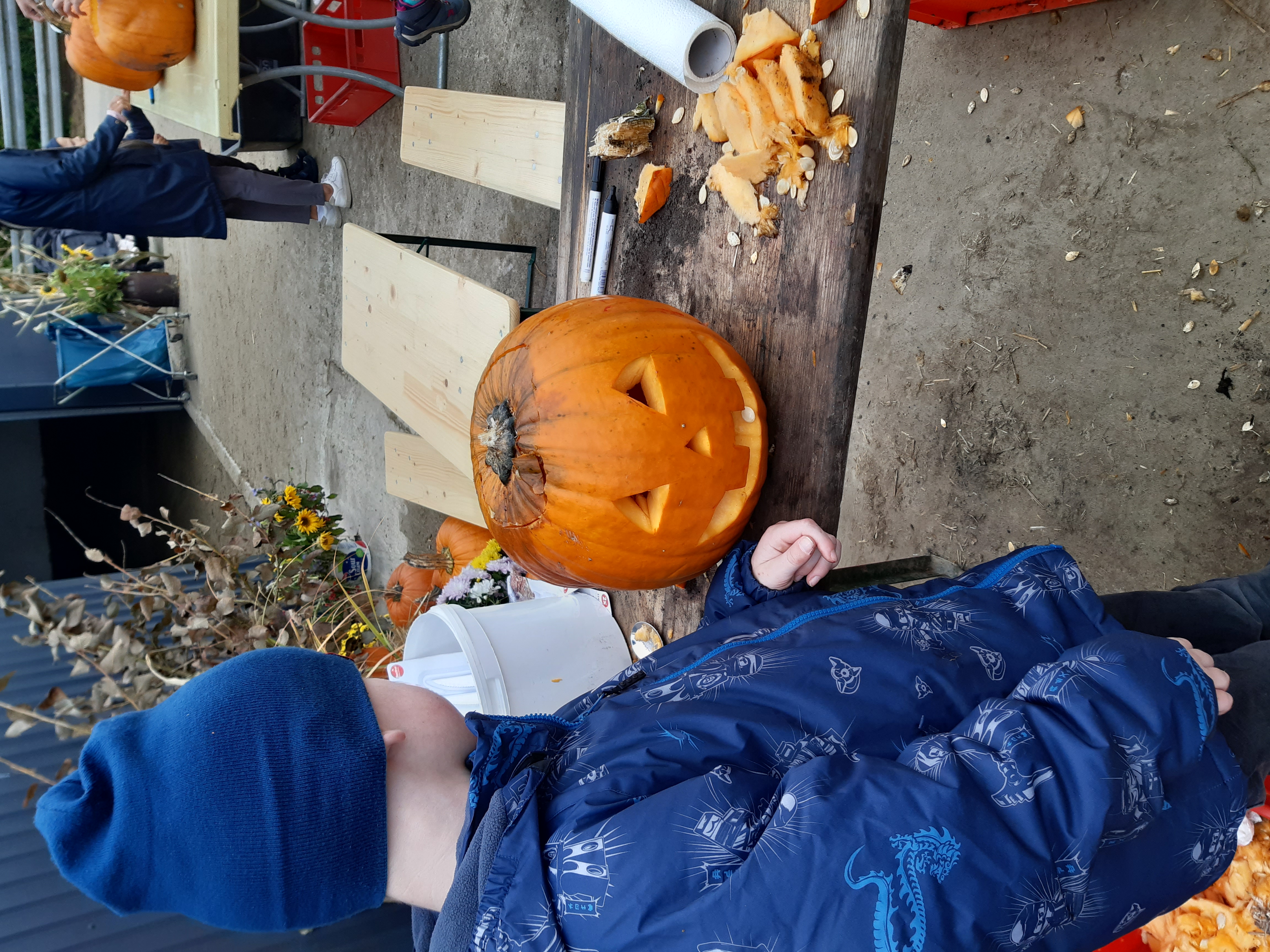 Ihr müsst aber nicht gleich wieder nach Hause fahren. Es gibt doch nicht schöneres als in gemütlicher Atmosphäre den Kürbis gleich für Halloween zu gestalten.