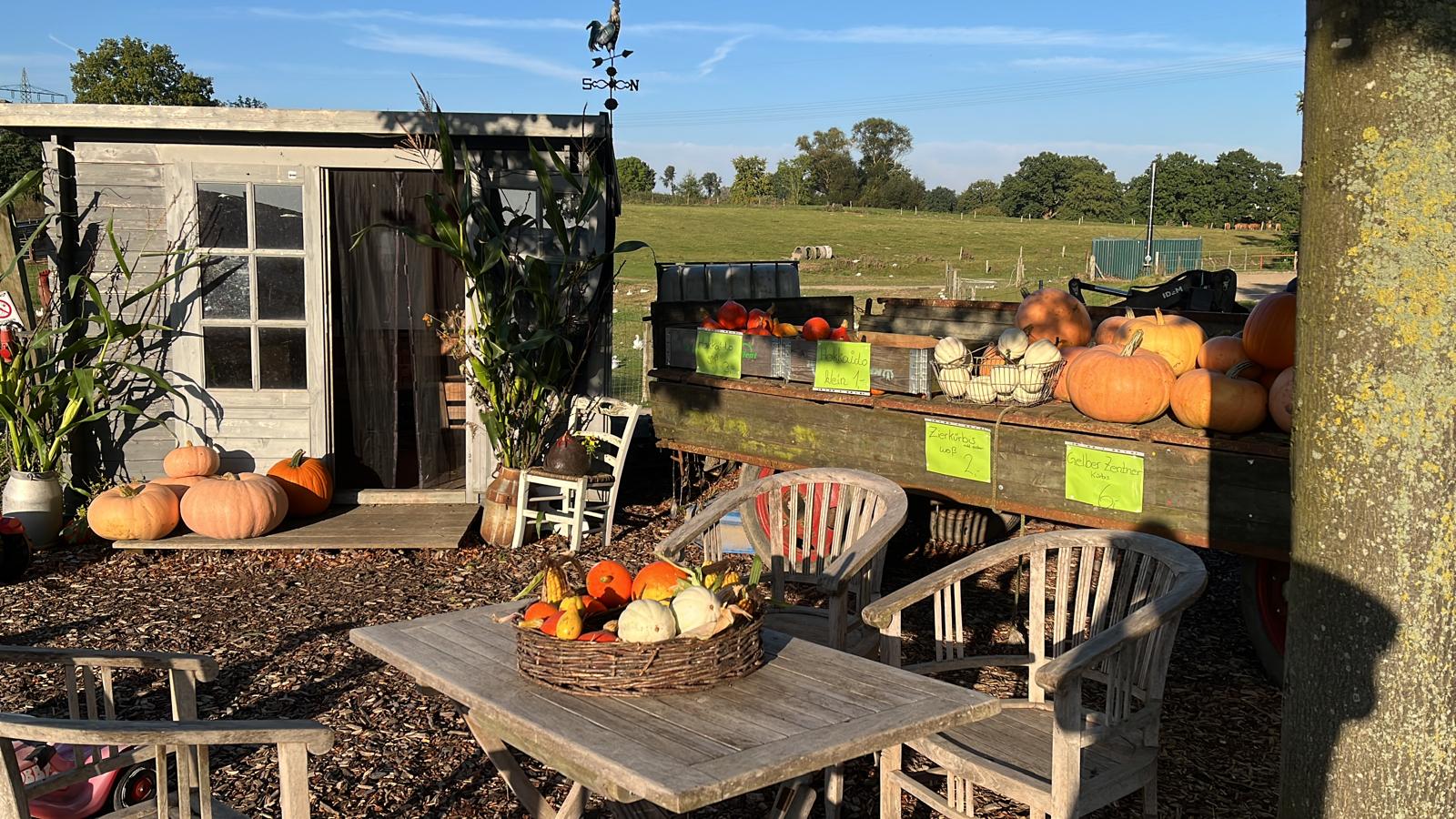 Kürbisfest verpasst? Kein Problem, unsere Kürbisse können auch bei unserem Verkaufshäuschen im Eichenweg 13 gekauft werden.